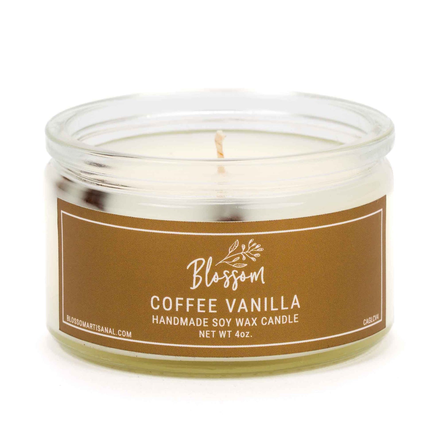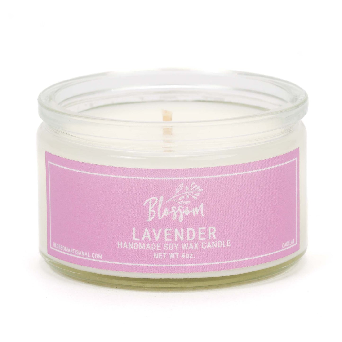 Blossom's classic soy wax glass candle in a compact size. Our beautiful 4oz glass candles are perfect for trying new scents or giving as a gift! Soy wax provides a non-toxic, clean burn and is slower burning than paraffin wax candles.